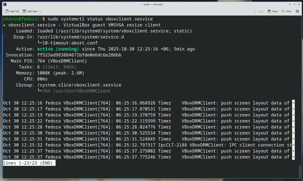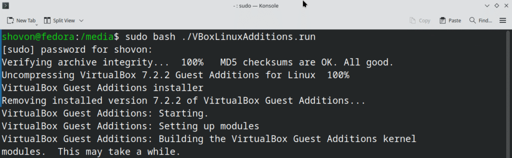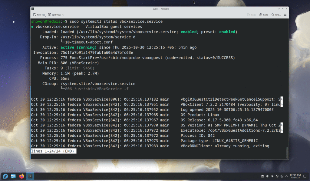 Checking if VirtualBox Guest Additions was Installed Correctly on Fedora 43